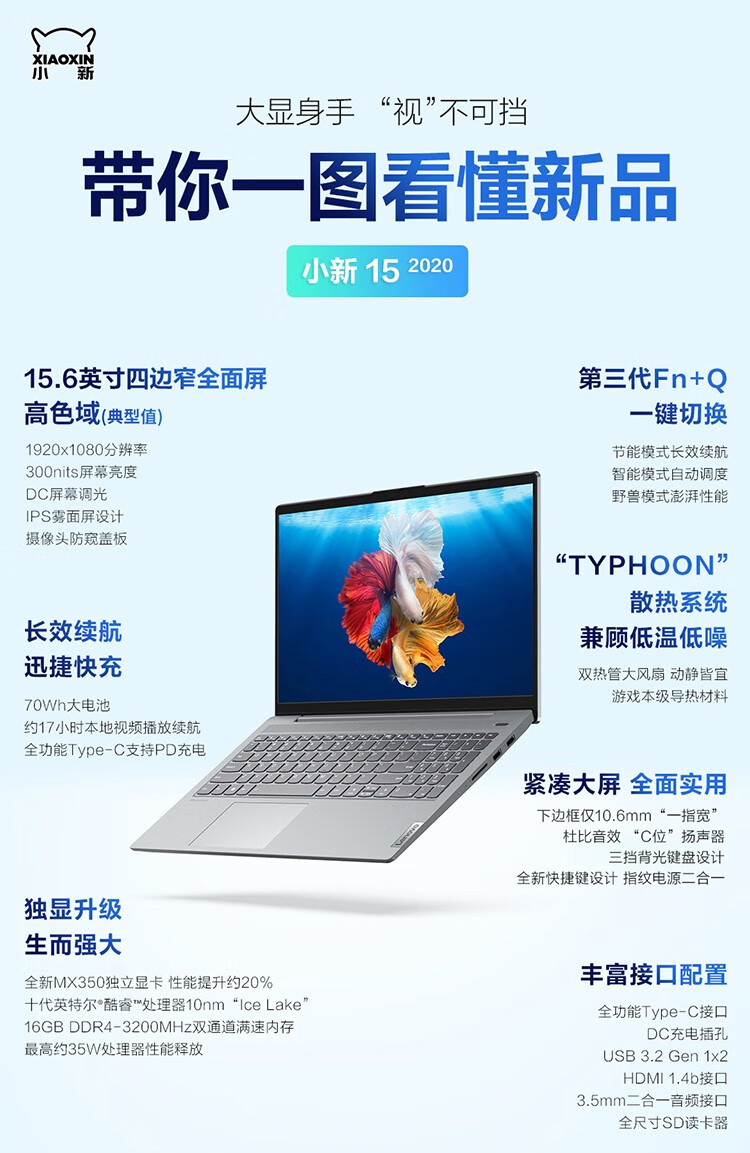 联想小新15 2020款十代酷睿15.6英寸全面屏超轻薄笔记本电脑 高配 :i5-1035G1 16G 512G MX350高性能显卡