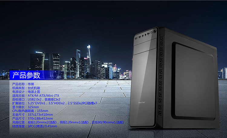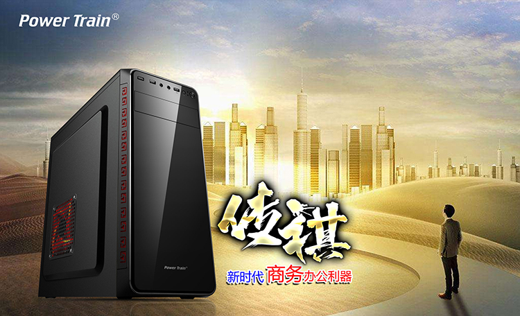 动力火车电脑机箱【传祺】办公台式主机箱(支持ATX主板/U2/SSD/背线) 黑色空箱