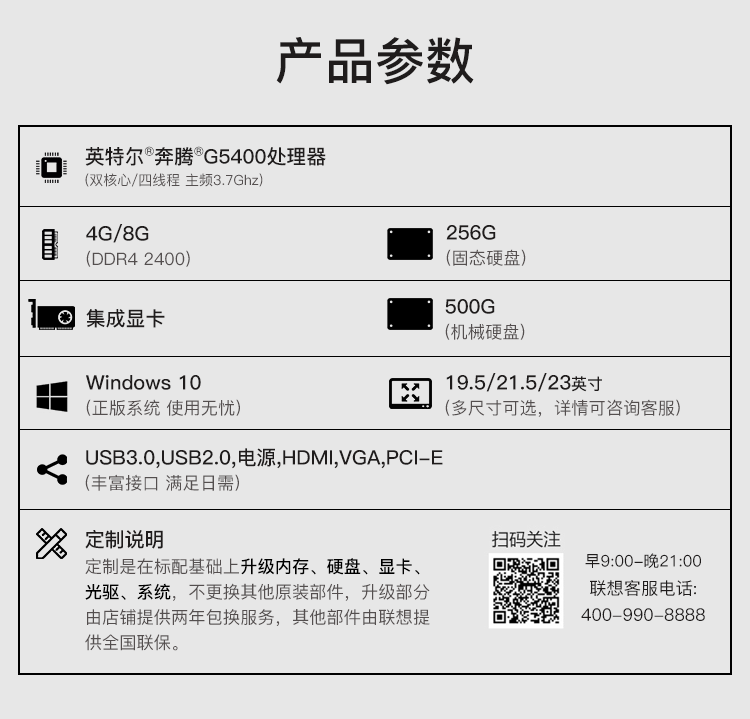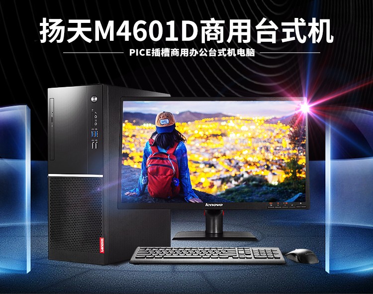 联想(Lenovo)扬天M4601D商用办公台式机电脑主机9针串口PIC-E插槽 标配G5400 4G内存 500G 集显 W10 主机+ 19.5英寸显示器